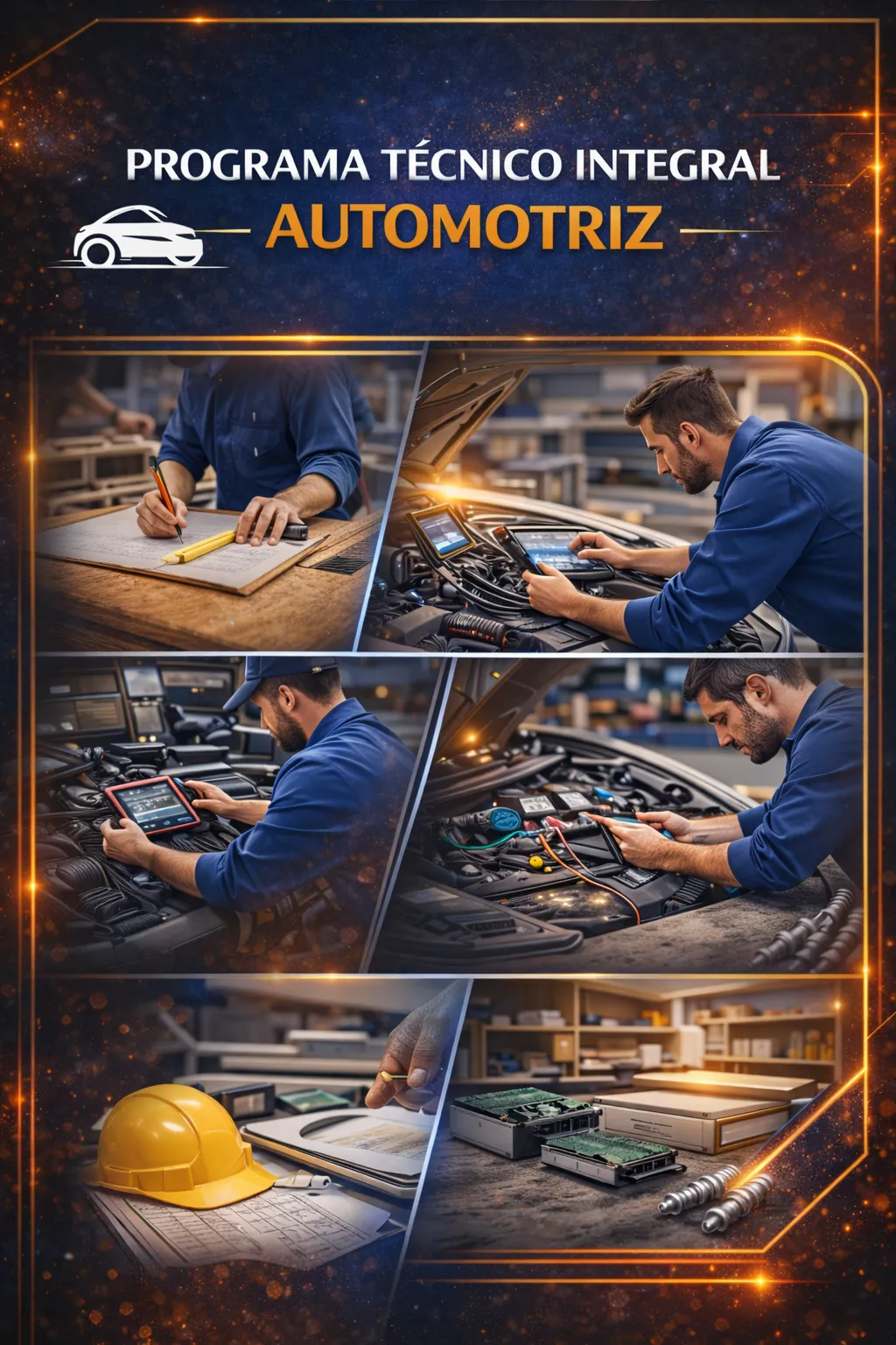 Formación profesional 100 % práctica en diagnóstico, mantenimiento y tecnología vehicular, organizada en módulos progresivos para un aprendizaje completo y aplicado al campo laboral.